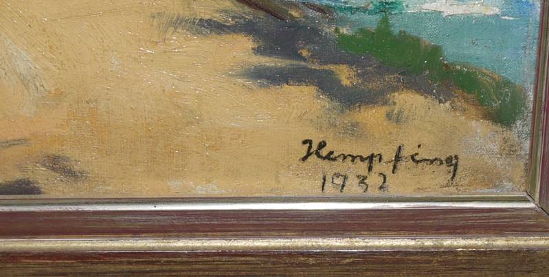 Wilhelm Hempfing, Küstenlandschaft, Ölgemälde von 1932, gerahmt