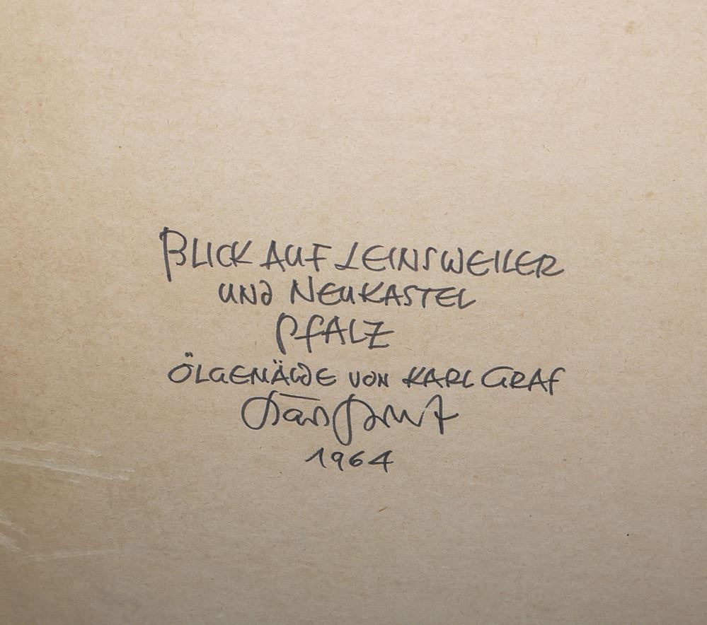 Karl Graf, "Blick auf Leinsweiler und Neukastell, Pfalz", Ölgemälde von 1964, gerahmt