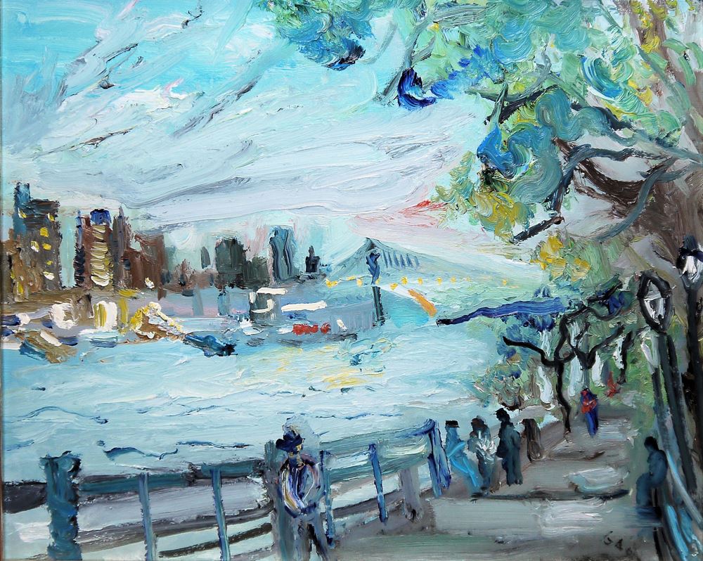 0124-Simon Gaon, “Riverside Drive” von 1999, Ölgemälde, gerahmt