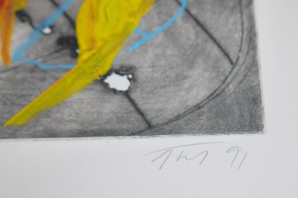 Albert Fürst, "Spiele über einem alten Grundriss", signierte Mischtechnik/ Radierung von 1991
