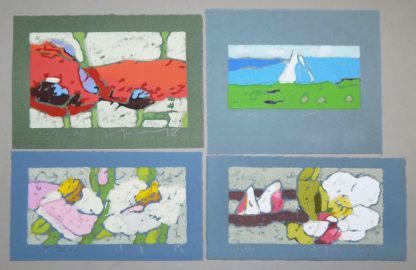 0130-Klaus Fußmann, Blumen und Küste, 4 signierte Farblinolschnitte von 2012-22