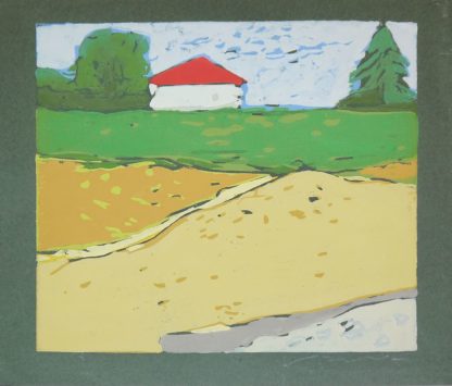 0132-Klaus Fußmann, Landschaft mit Haus, signierter Farblinolschnitt von 2015