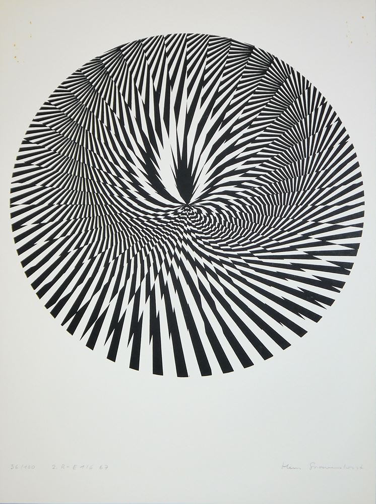 Zum Künstler: Künstler und Fotograf. 1953-55 Studium der Fotografie, von 1955 bis 1957 Grafik und Industrie-Design und von 1958 bis 1960 Filmtechnik in Berlin und München. Seit 1970 ist er Dozent für Fotografie an der Fachhochschule Kiel. Hein Gravenhorst ist ein Vertreter der Konkreten Fotografie und gehört zusammen mit Gottfried Jäger zu den Begründern der Generativen Fotografie. Er nahm außerdem an der ersten Ausstellung der Computerkunst teil. Seine Werke sind u.a. im MoMa in New York City.
