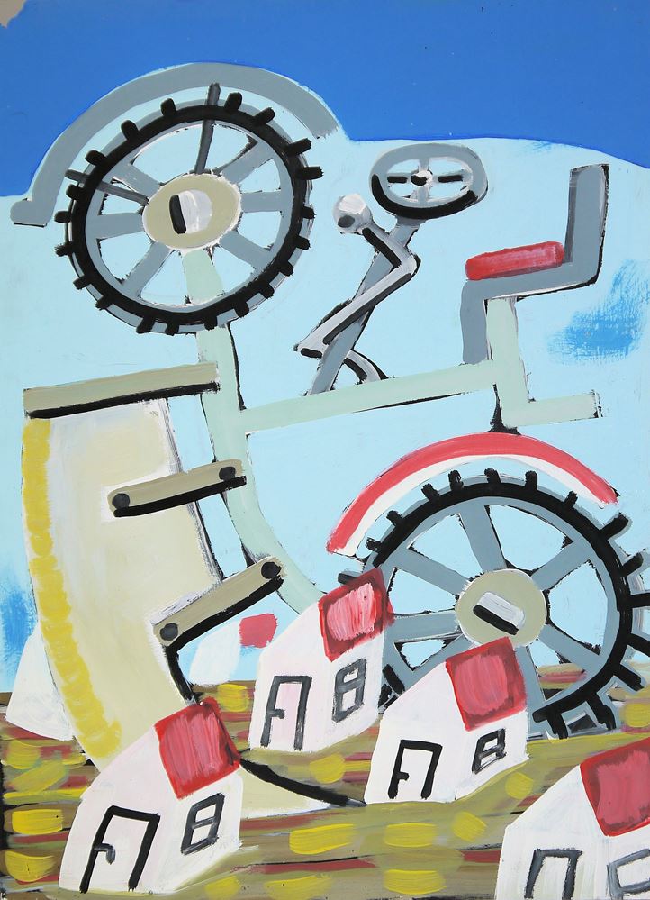 0152-Constantin Hahm, “Modernes Troja”, Ölgemälde von 1985, o.T. und “eructo”, Acryl-Gemälde von 1984 + 3 Ausstellungskataloge