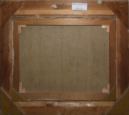 0155-Wilhelm Hempfing, “An den Rheinauen”, Ölgemälde 1920er Jahre, im floralen Goldstuckrahmen