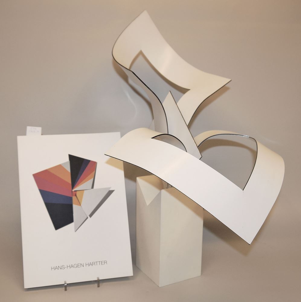 Hans-Hagen Hartter, 1943 Berlin - 2001 Wiesloch, abstrakte Plastik auf Sockel, geformter Kunststoff, auf Holzsockel, am Boden signiert, Gesamthöhe 54 cm, dazu ein monografischer Katalog.