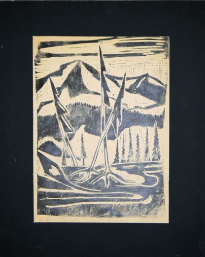 Erich Heckel,1883 Döbeln - 1970 Radolfzell, bedeutender deutscher Maler und Grafiker des Expressionismus, hier: Winterlandschaft mit vereinzelten Nadelbäumen, Holzschnitt, 35 x 25 cm, sign., unter P.partout, gebräunt
