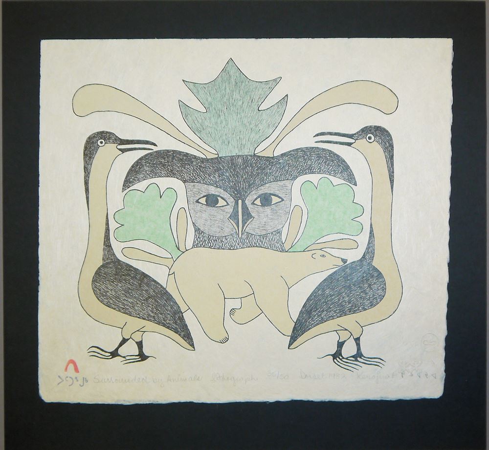 0175-5 x Inuit Kunst: Kenojuak Ashevak, Solomon Karpik, 3 x Ashona Pitseolak, in schöner Sammelmappe