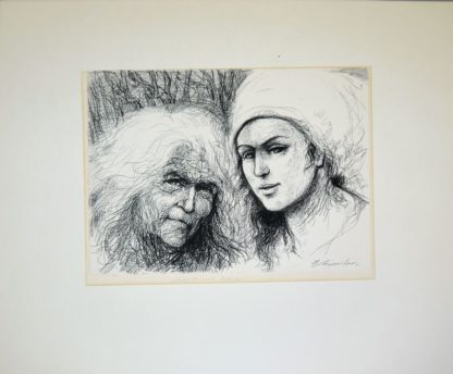 0177-Irmgard Himmler, Porträts und Ansicht von Frankenthal, 2 Kohlezeichnungen und 2 Druckgraphiken, alle signiert