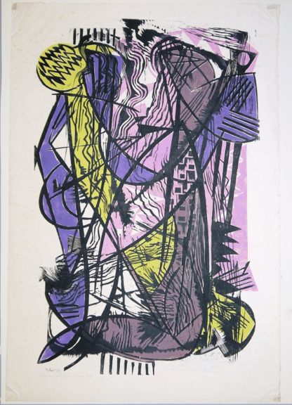 Georg Heck, 2 signierte Farbholzschnitte der 1950er Georg Heck, 1897 - Frankfurt/M. - 1982, Künstler des Expressionismus und der Neuen Sachlichkeit. 1928-32 Städel-Schule, Beckmann-Meisterschüler, bis ca. 1960 Hinwendung zur Abstraktion. Hier: Abstrakte Komposition, Farbholzschnitt/Japanpapier, 78 x 48,5 cm, sign., dat. (19)54, bez. Probedruck, Ecken befestigt und leicht knickfaltig, Blatt leicht stockfleckig; "Die stillen Begleiter", Farbholzschnitt/Japanpapier, 68,5 x 54 cm, sign., dat. (19)54, Ecken befestigt und leicht knickfaltig, Rand mit drei Flecken, minimal fleckig, sonst beide altersgemäß guter Zustand, o. Rahmen