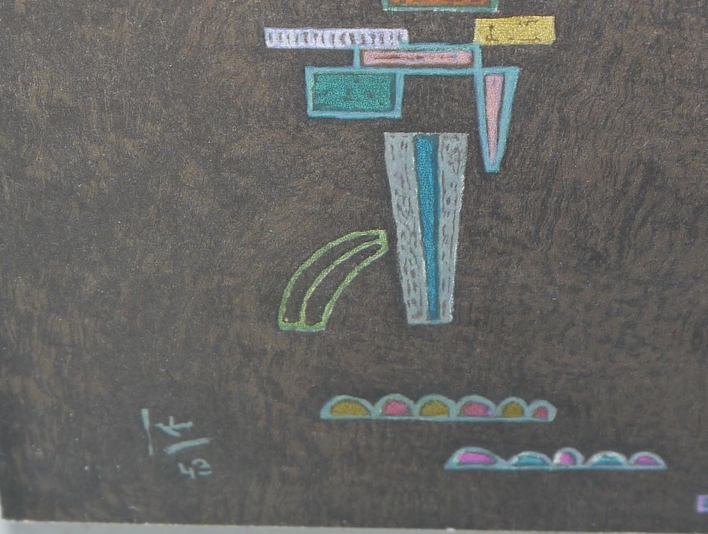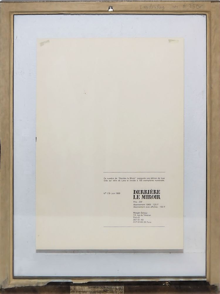 Wassily Kandinsky, 1866 Moskau - 1944 Neuilly-sur-Seine, russischer Maler und Grafiker, der auch in Deutschland und Frankreich lebte und wirkte, hier: Rückseite von Derrière le Miroir N° 179 Juin 1969, Farblithographie, 38 x 27,5 cm, verso bezeichnet, Maeght Editeur, unter Glas gerahmt