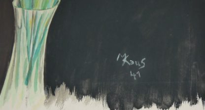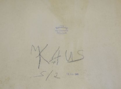 Max Kaus, Gladiolen, Aquarell von 1941 Max Kaus, 1891 - Berlin - 1977, deutscher Maler und Graphiker, bunter Gladiolen in Blumenvase vor dunklem Hintergrund, Aquarell/Papier, 56 x 43,5 cm, sign. u. dat. (19)41, verso Stempel "Sammlung von Löwenstein, München", zwei Nadellöcher, ohne Rahmen Zum Künstler: Max Kaus studierte von 1908 bis 1913 an der Unterrichtsanstalt des Kunstgewerbemuseums Berlin und in den Jahren 1913 und 1914 an der Akademie der Künste Berlin Malerei bei Erich Heckel und Graphik bei Ernst Ludwig Kirchner.1937 wurde im Rahmen der deutschlandweiten konzertierten Aktion „Entartete Kunst“ eine bedeutende Anzahl seiner Werke aus deutschen Museen und öffentlichen Sammlungen beschlagnahmt. Nach dem Ende des Krieges erfolgte seine Berufung an die Hochschule für Bildende Künste Berlin zum Hochschullehrer und stellvertretenden Direktor unter Karl Hofer.