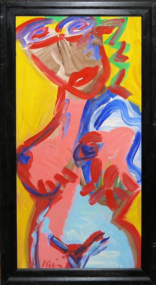 Peter Robert Keil, Sammlungsnachlass von 5 Originalarbeiten, ab 1959 Peter Robert Keil, *1942 Züllichau, Rauchende Köpfe, Öl/Platte, 60 x 50 cm, signiert, datiert (19)59, gerahmt; "Zungenkuss im Treppenhaus" und "First Kiss", 2 Pastelle, je ca. 53 x 68 cm, unter Glas gerahmt; Großer Akt, Öl/Platte, 89 x 45 cm, signiert, gerahmt; Gesichter, Öl/Platte, 50 x 39 cm, signiert, gerahmt Zum Künstler: Peter Robert studierte zwischen 1959 und 1961an der Hochschule der Künste in Berlin. Dort kam er in Kontakt mit zahlreichen anderen Künstlern, die seine Generation prägen sollten, so z. B. Georg Baselitz, Markus Lüpertz u.a. In seiner Zeit auf Mallorca traf er mehrfach mit Joan Miró in dessen Atelier zusammen. Ab den frühen 1960er Jahren bezog Keil Ateliers in Paris, London, Berlin und in den USA. In der Anfangsphase seines künstlerischen Schaffens orientierte sich Peter Keil stilistisch am deutschen Expressionismus. Thematisch interessierte er sich dabei in den Werken der frühen Berliner Jahre zunächst vor allem für typische Großstadtmillieus und Randfiguren der Gesellschaft. Zeitgleich mit seinem Aufenthalt in Paris zu Beginn der 60er Jahre lässt sich jedoch eine große Veränderung in seiner Stilistik beobachten. Keil entwickelte sich zunehmend weg von einer realistischen Auffassung und hin zu einem neuen, sehr viel spontaneren und dynamischeren Malstil, den er während seiner Londoner Jahre und schließlich als Teil der Berliner Neuen Wilden zu Beginn der 80er Jahre weiterentwickelte. Die Verwendung intensiver bis greller Farben, sowie der Verzicht auf eine realistische Gegenständlichkeit sind seitdem die typischen Merkmale seines Malstils