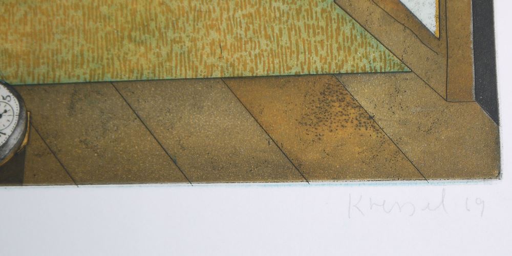 Zum Künstler: Diether Kressel studierte von 1945 bis 1948 an der Landeskunstschule in Hamburg bei Erich Hartmann und Willi Titze. Er zeichnete und malte unter anderem in Kampen auf Sylt, wo er seinen späteren Auftraggeber Axel Springer kennenlernte. In den 1950er Jahren widmete sich Kressel, neben der Zeichnung und der Malerei, auch dem Holzschnitt und war als Illustrator unter anderem für den Stern tätig. 1965 begann er Radierungen herzustellen, die seiner künstlerischen Arbeit eine neue Richtung gaben und ihm Anerkennung bei der Kritik und bei den Kunstsammlern einbrachten.