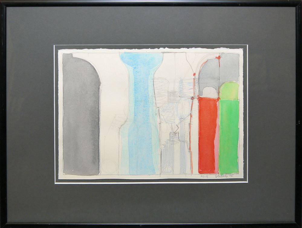 Heinz Kreutz, Triptychon: Farbgruppen & Farbfiguren, 3 Aquarelle gleich gerahmt
