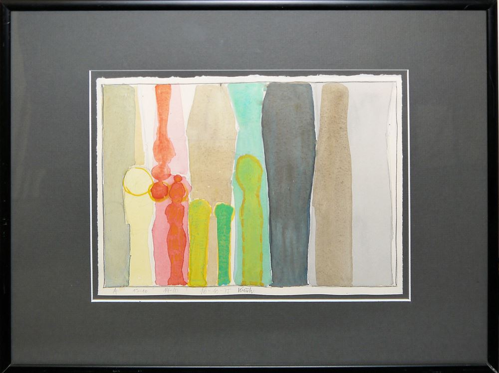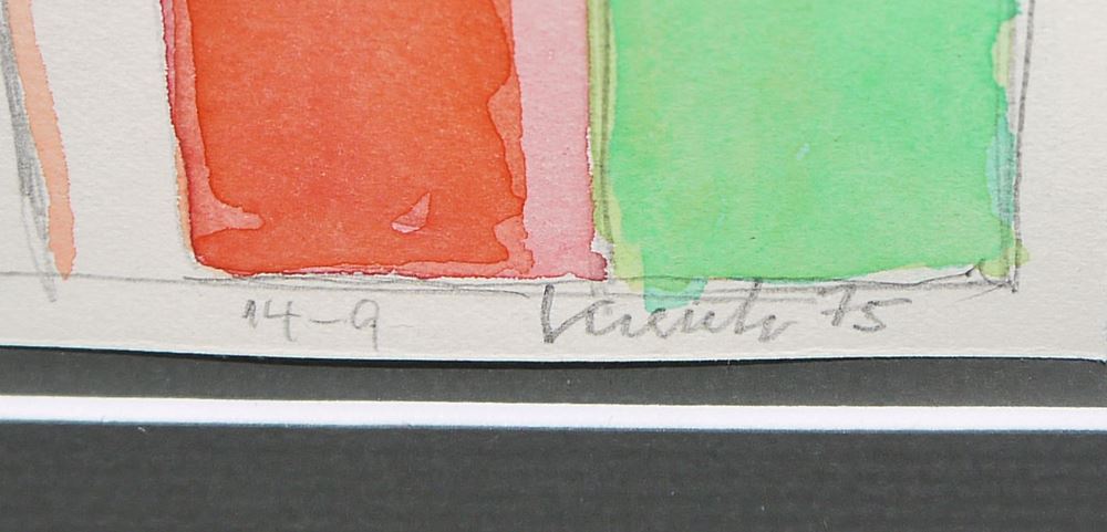 Heinz Kreutz, 1923 Frankfurt a.M. - 2016 Penzberg, deutscher Maler des Informel, hier: Triptychon (auch als 3 Einzelblätter hängbar) Farbgruppen & Farbfiguren, 3 Aquarelle, je 17,5 x 24,5 cm, jeweils sign. u. dat. 75, alle gleich unter P.partouts gerahmt (Gesamt: je 31 x 41 cm)