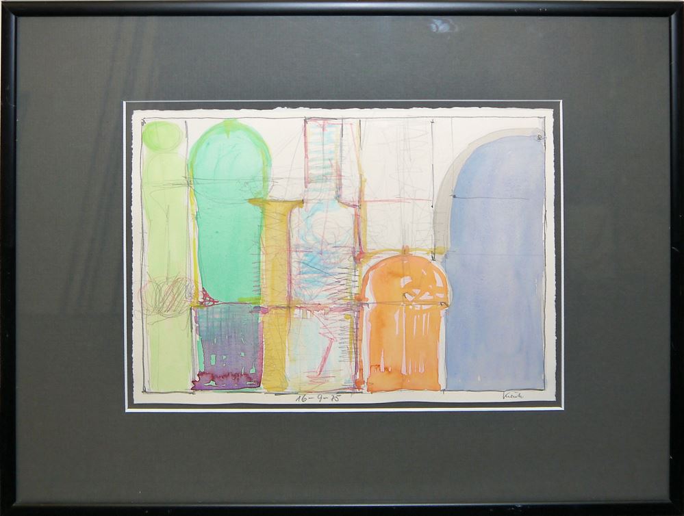 0206-Heinz Kreutz, Triptychon: Farbgruppen & Farbfiguren, 3 Aquarelle gleich gerahmt
