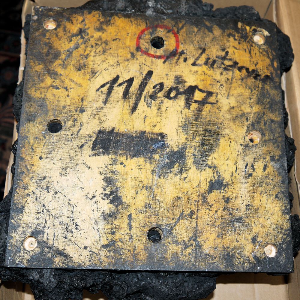 Matthias Lutzeyer, *1959 Stuttgart, Form in Schwarz, plastisches Wandobjekt, Leinöl/Eisenoxydschwarz/Rußschwarz/Holzplatte, ca. 30 x 30 cm, verso signiert, datiert 11/2017