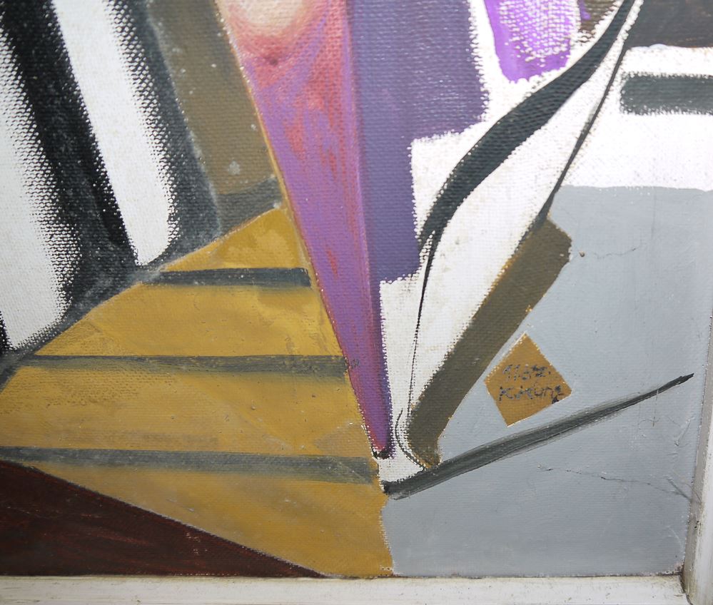 0215-Karl Lorenz Kunz, “Interieur mit Kreuzchen”, großes Ölgemälde von 1957, gerahmt