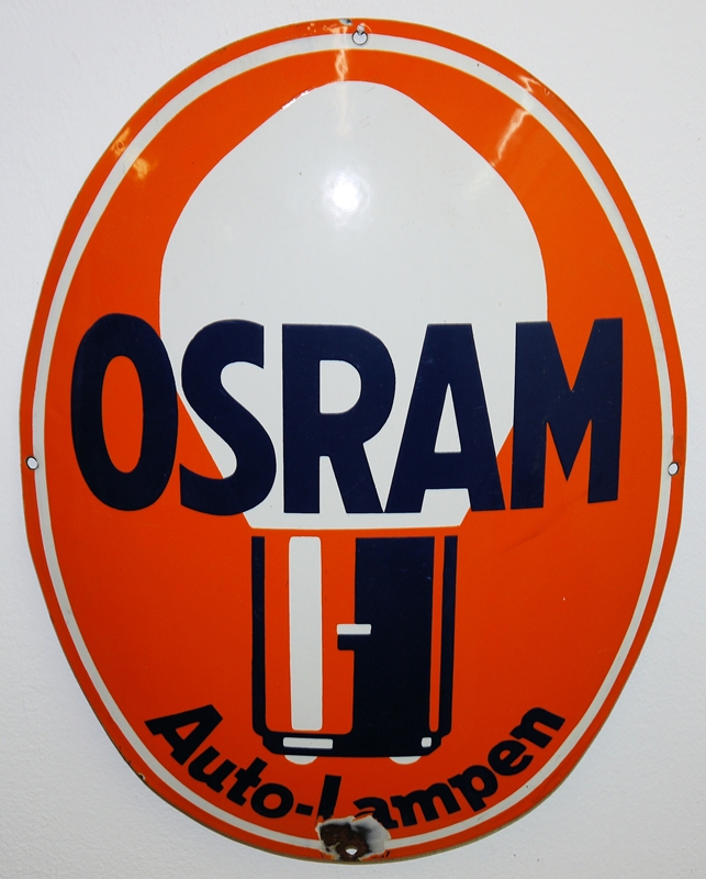 Osram Autolampen Osram, ovales Schild mit Schriftzug und Glühbirne, Z2+, 48,5 x 37 cm