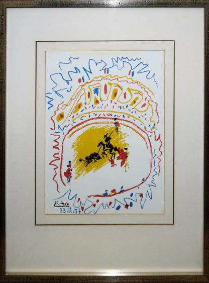 Pablo Picasso, 1881 - 1973, " La petite corrida", Farblithographie, 31,8 x 24,8 cm, im Stein sign. u. dat., WVZ Mourlot 302 - Marc Chagall, 1887 - 1985, Stillleben in Braun", Farblithographie, 23,5 x 20,5 cm, WVZ Mourlot 205, beide unter P.partout gerahmt