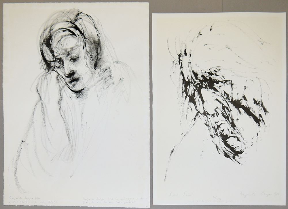 0227-Margarethe Krieger, Sammlungsnachlass mit 8 großen Porträts (4 Tuschezeichnungen & 4 sign. Lithografien auf Bütten)