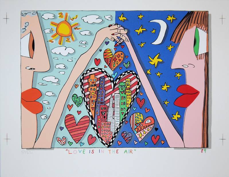 James Rizzi, "Love is in the air", signierte Farbserigraphie von 1989