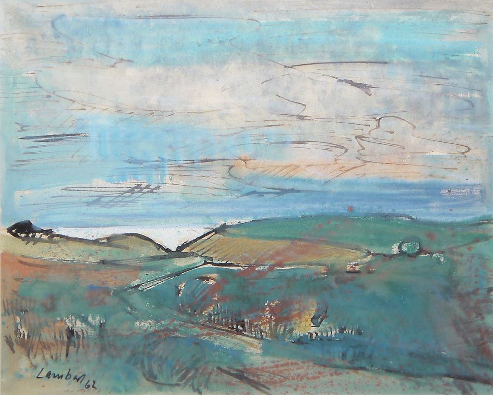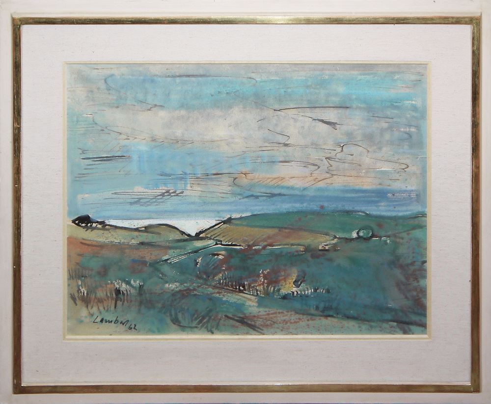 Kurt „Claude“ Lambert, 1908 - Berlin - 1967, dt. Maler, Weite Landschaft mit Meeresblick, Aquarell/Papier, 47,5 x 61.5 cm, signiert und datiert (19)62, unter P.p. und Glas gerahmt