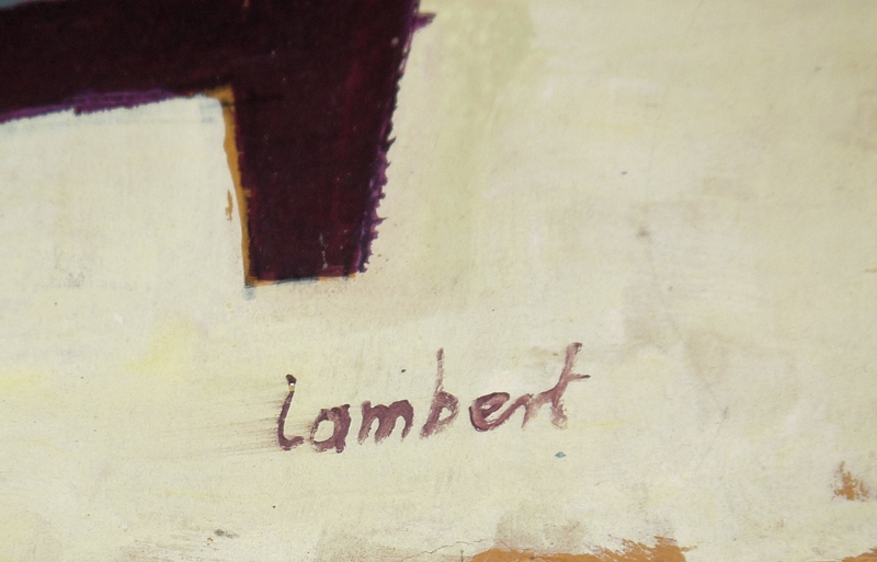 Kurt "Claude" Lambert, 1908 - Berlin - 1967, dtsch. Maler, ab 1932 Studium an der KA Berlin, 1939 großer Staatspreis für Malerei, ab 1948/50 in Kampen und Hamburg tätig, hier: Abstrakt-reduzierte Studie mit kubischen Häusern in expressivem Kolorit, Öl/ Karton, 48 x 68 cm, r. u. sign.