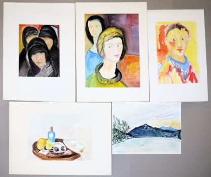Marjosch (= Martin Johannes Scholkmann) & Gustav Grund, acht & fünf Aquarelle Marjosch, eigentlich Martin Johannes Scholkmann,*1938 Leonberg - 2013 Stuttgart, deutscher Maler, hier: Acht abstrakt-figurative Aquarelle, je 40 x 60 cm, jeweils sign. / Gustav Grund, 1912 Worms -1996 Bergisch Gladbach, deutscher Maler, hier: 5 Aquarelle: 3 expressive Porträts, ein Stillleben, eine Landschaft "Luganer See", je 50 x 30 cm, jeweils sign. u. dat. Zu den Künstlern: Martin Johannes Scholkmann studierte von 1957 bis 1960 an der Höheren Fachschule für das Graphische Gewerbe in Stuttgart bei Leo Schobinger, Albrecht Ade und Albrecht Appelhans sowie an der Staatlichen Akademie der Bildenden Künste Stuttgart im Fachbereich Malerei bei Heinrich Wildemann und Rudolf Müller. Marjoschs Werke sind der abstrakten Malerei (bzw. gegenstandslosen Malerei) mit Einflüssen aus dem Konstruktivismus zuzuordnen. Die Arbeiten von Paul Klee und den Konstruktivisten Piet Mondrian und Adolf Fleischmann beeinflussten sein künstlerisches Schaffen und die Herausbildung seines eigenen Malstils. / Gustav Grund studierte von 1930 - 32 an der Kölner Werkschule bei Prof. Richard Seewald und von 1933 - 34 an der Kunstakademie in Düsseldorf bei den Prof. Heinrich Heuser und Heinrich Nauen. Ab 1935 war er als freischaffender Maler tätig