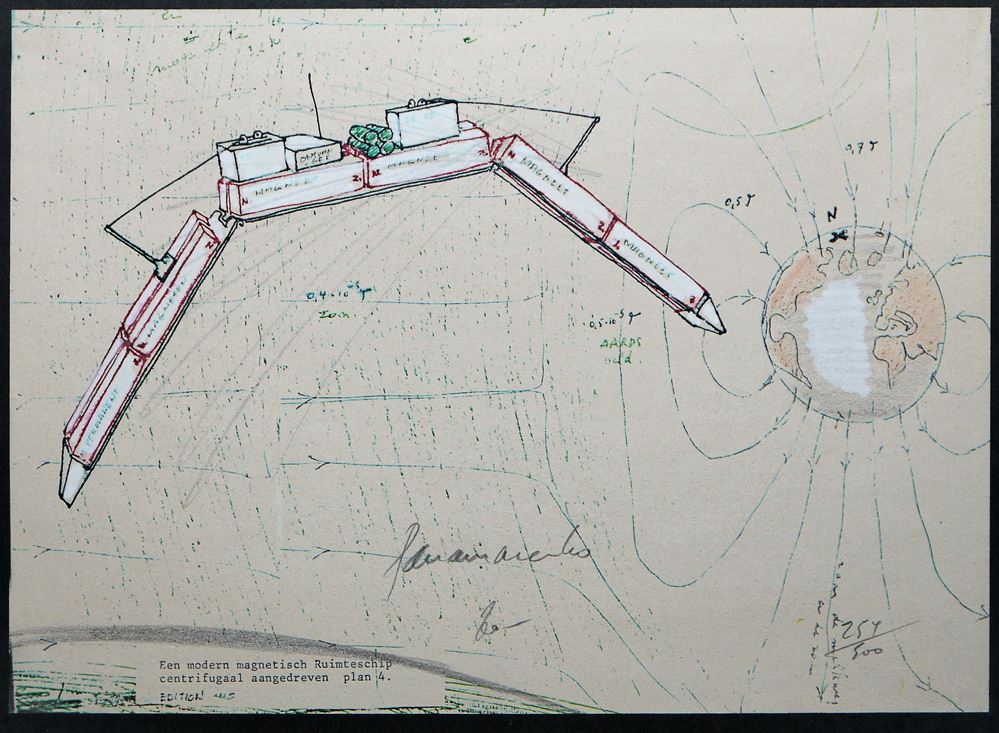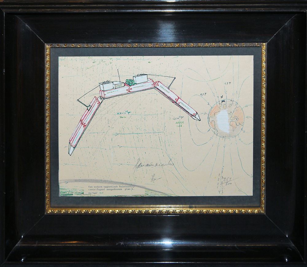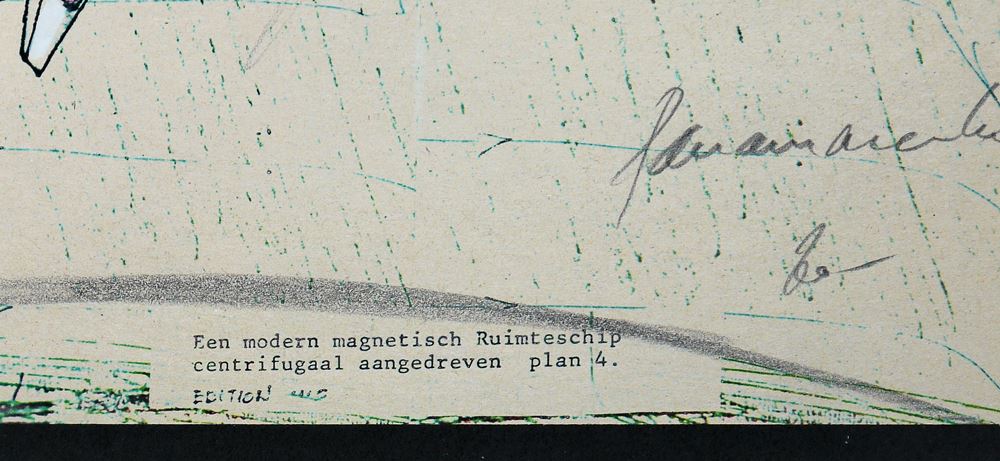 0262-Panamarenko, “Een modern magnetisch Ruimteship centrifugaal aangedreven – plan 4”, handkolorierte, sign. Lithographie, gerahmt