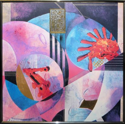 Werner Menrad, *1936 Ladenburg, Roboter, Farboffset mit Platine, Collage, 92 x 92 cm; Kraftwerk, Farboffset mit Platine, Collage, 92 x 92 cm; "ABB Calor Emag Schaltanlagen", Collage, Farboffset mit Goldapplikation und Chip, 46 x 46 cm, signiert, datiert (19)94, nummeriert 11/50, bezeichnet, unter P.p. und Glas gerahmt