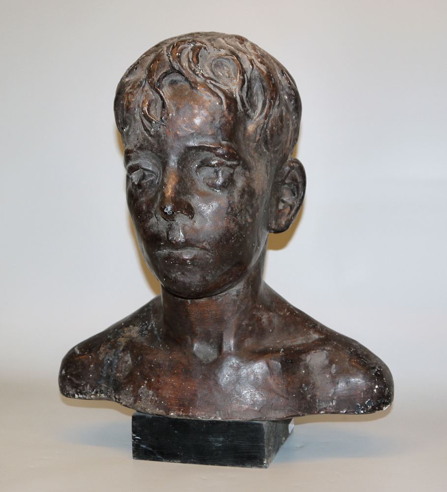 Richard Menges, 1910 - Kaiserslautern - 1998, deutscher Bildhauer, Frauenkopf, Büste auf Holzsockel, aus dem Nachlass des Künstlers, H 37 cm, H mit Sockel 42 cm