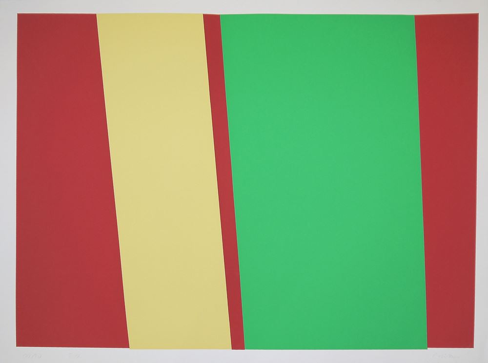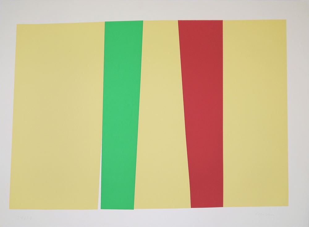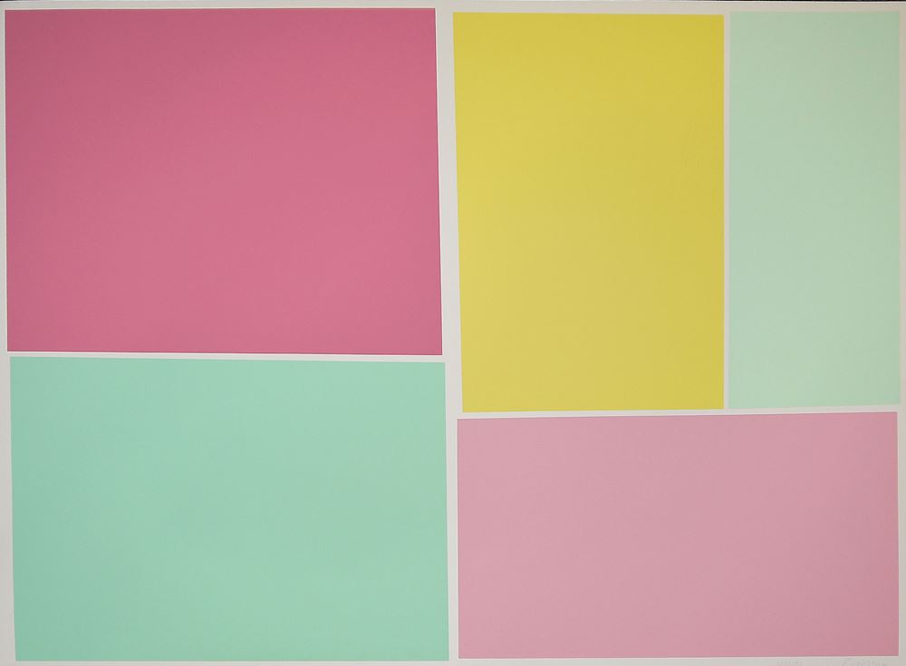 Sarah Pelikan, 4 "Farbplattenräume", vier größere sign. Farbsiebdrucke Sarah Pelikan,* 1947 Immenstadt, deutsche Künstlerin, 4er Serie "Farbplattenräume", vier Kompositionen der Kunstrichtung "Farbfeldmalerei", Farbsiebdrucke, je 68 x 96 cm, je num. 11/30 (2x), 17 & 24/30, jeweils sign. Zur Künstlerin: Sarah Pelikan studierte von 1968 bis 1974 an der Akademie der Bildenden Künste in München. Bei ihrer Arbeit entstehen intensivfarbige Farbplattenräume oder -bilder, wobei Form und Größe der Farbflächen in gleicher Weise Gestaltungselemente sind. Eine große Einzelausstellung wurde Sarah Pelikan in der Kunsthalle Lingen (Ems) im Jahre 2012 ausgerichtet.