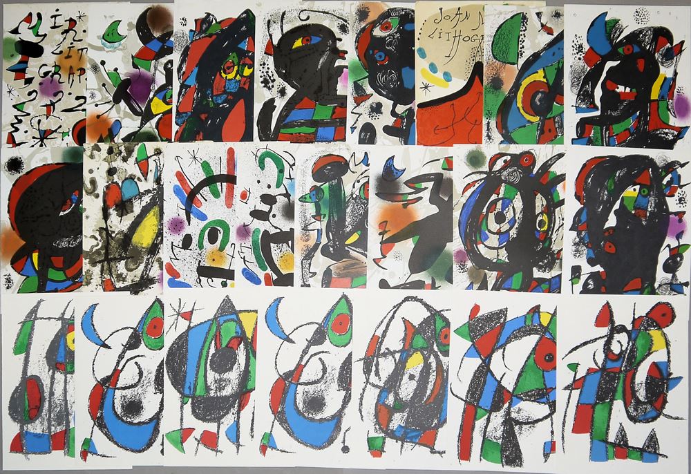 Joan Miró, 1893 Barcelona - 1983 Palma, Abstrakte Kompositionen, 23 Original-Farblithographien aus Miro Lithographie, je ca. 33 x 25 cm, Mourlot 1975, verso teils bezeichnet