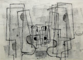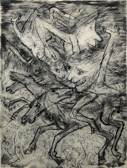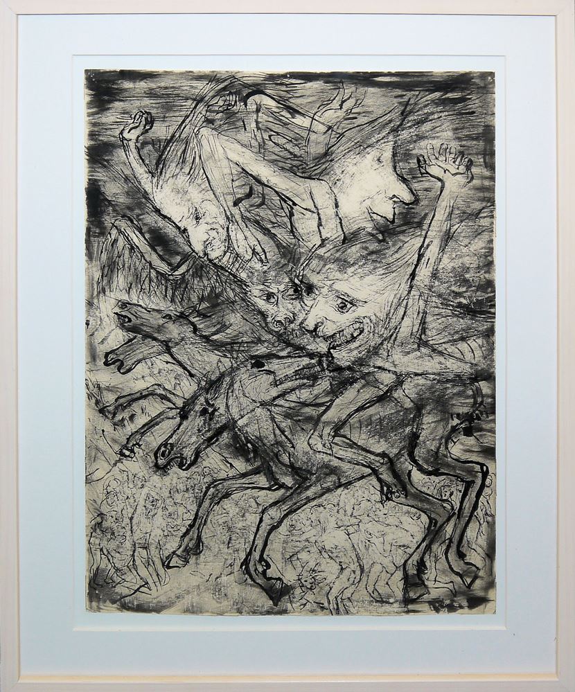0276-Willi Müller-Hufschmid, “Die apokalyptischen Reiter”, abstrakte Tuschezeichnung, gerahmt