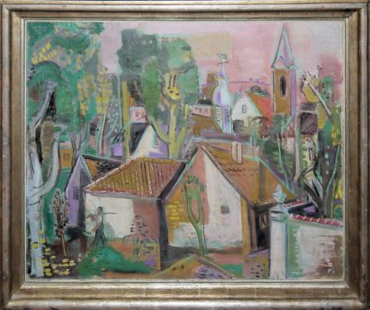 0277-Rolf Müller-Landau, “Südpfälzisches Dorf”, großes Ölgemälde von 1947, gerahmt
