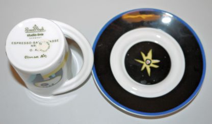 11 Espresso-Sammeltassen mit Unterteller von unterschiedlichen Künstlern, Entwürfe: B. Brenner (Nr. 2), Y. Galgon (Nr. 6), Otmar Alt (Nr. 7), B. Wiinblad (Nr. 9), M. Morandini, Salome (Nr. 17), Yang (Nr. 22), Ch. Häusler Goltz (Nr. 24), Katja Marzahn (Nr. 25), Sanja Zivo (Nr. 27), Kitty Kahane (Nr. 28)