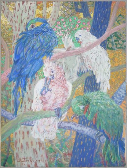 0286-Paul Neuenborn, Papageien, signierte Gouache
