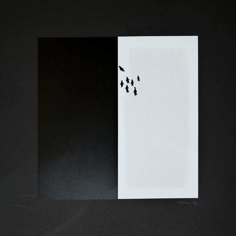 Timur Novikov, Sonnenaufgang am Meer, Tanne bei Nacht und Pinguine, drei Farbserigraphien von 1992 Timur Petrovich Novikov, 1958 - Leningrad (jetzt St. Petersburg) - 2002, russischer bildender Künstler, Designer, Kunsttheoretiker, Philosoph und Musiker. Er gilt als einer der einflussreichsten Vertreter der nonkonformistischen Kunst vor und nach dem Zerfall der Sowjetunion 1991, hier: Sonnenaufgang am Meer, Tanne bei Nacht und Pinguine, drei Farbserigraphien, alle 40 x 40 cm, sign. u. dat., o. Rahmen