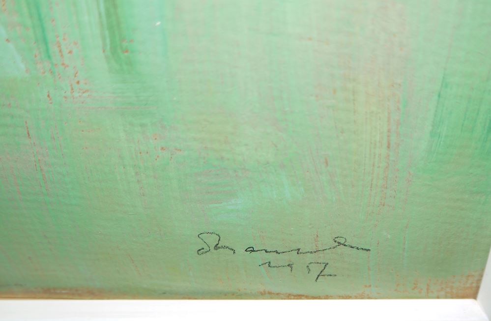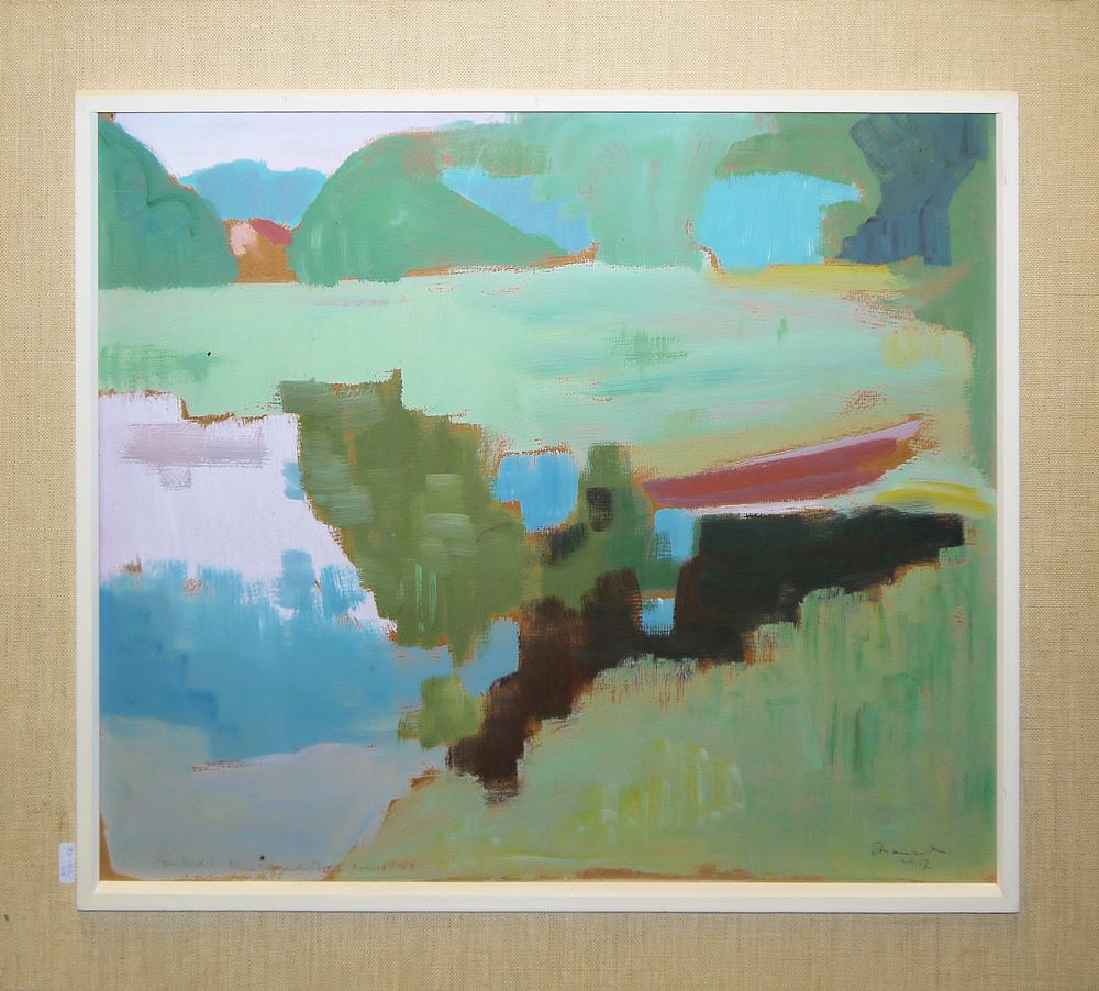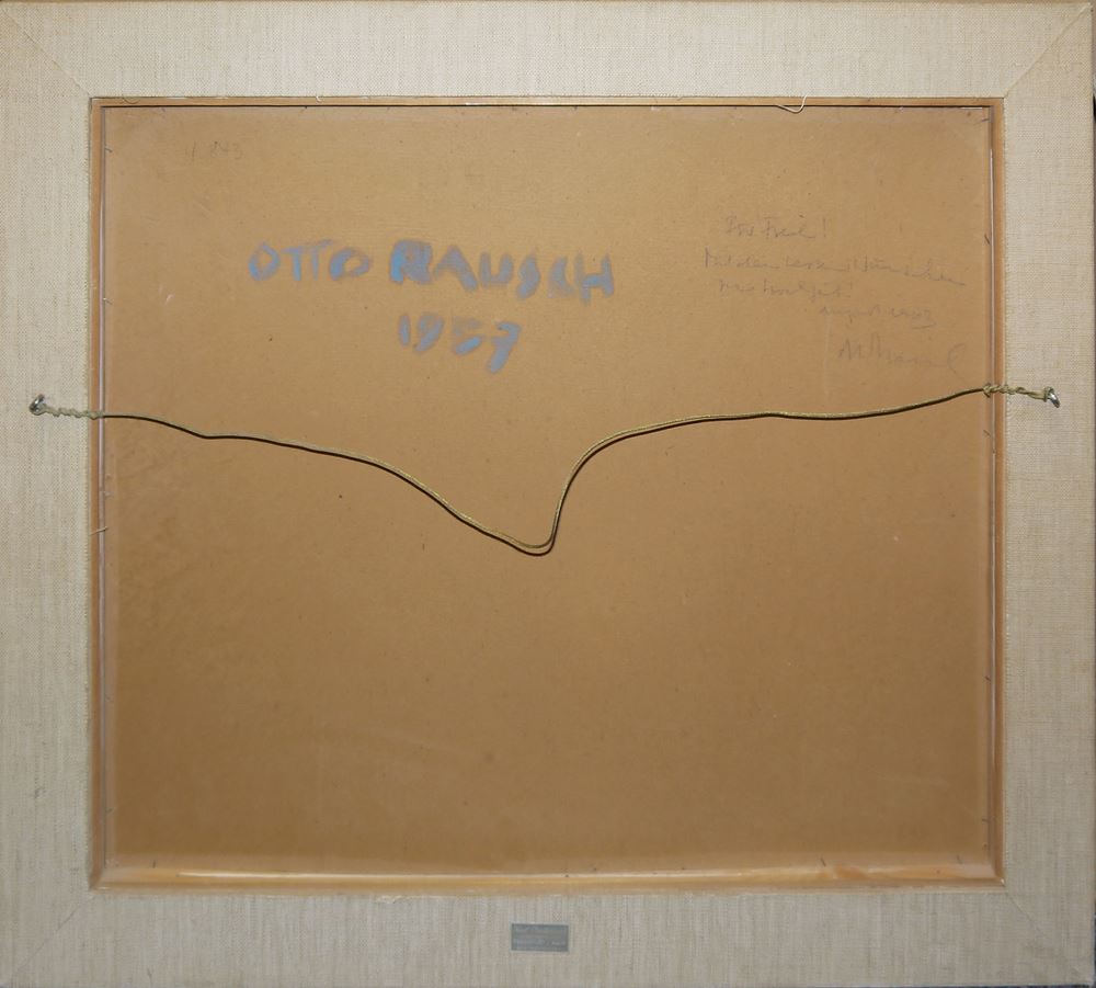 Otto Rausch, Landschaft, Ölgemälde von 1957, gerahmt Otto Rausch, 1923 Eggersriet - 2000 Walenstadtberg, Schweizer Maler, Grafiker und Bildhauer, Sommerliche Landschaft, Öl/Platte, 48 x 59 cm, signiert, datiert 1957, verso bezeichnet, gerahmt Zum Künstler: Otto Rausch war ein Sohn eines Steinbildhauers und besuchte die Kunstgewerbeschule St. Gallen, wo er von Alfred Stärkle (1883-1962) und Fritz Gilsi unterrichtet wurde. 1957 besuchte Rausch für kurze Zeit die École nationale supérieure des beaux-arts de Paris. Anschließend studierte er an der Grande Chaumière beim Maler Ossip Zadkine. 1958 schuf er erste Collagen und 1965 erste Holzschnitte und Lithografien.