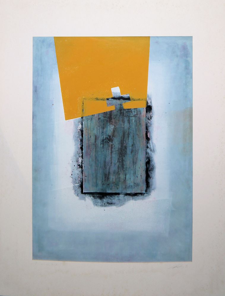 Manfred Schaller, *1961 Nürnberg, deutscher Maler, Graphiker & Fotograf, hier: "Kreuz 4 I - III", Triptychon aus der Vorstandsetage eines großen deutschen Industrieunternehmens, Mischtechnik, ca. 75 x 60 cm, mit P.partouts, Gesamt: je 100 x 80 cm, jeweils bez. u. sign.