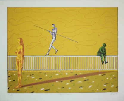Zum Künstler: Von 1968 bis 1973 studierte Uwe Pfeifer an der Hochschule für Grafik und Buchkunst Leipzig bei Werner Tübke, Hans Mayer-Foreyt und Wolfgang Mattheuer, seit 1973 ist er in Halle freischaffend tätig. Ab 1975 hatte er einen Lehrauftrag für Lithografie an der Kunsthochschule Burg Giebichenstein. Werke Pfeifers wurden in einer Vielzahl von Ausstellungen im In- und Ausland gezeigt, u. a. 1977/1978, 1982/1983 und 1987/1988 in Dresden auf der VIII. bis X. Kunstausstellung der DDR und 1982 und 1988 auf der Biennale di Venezia
