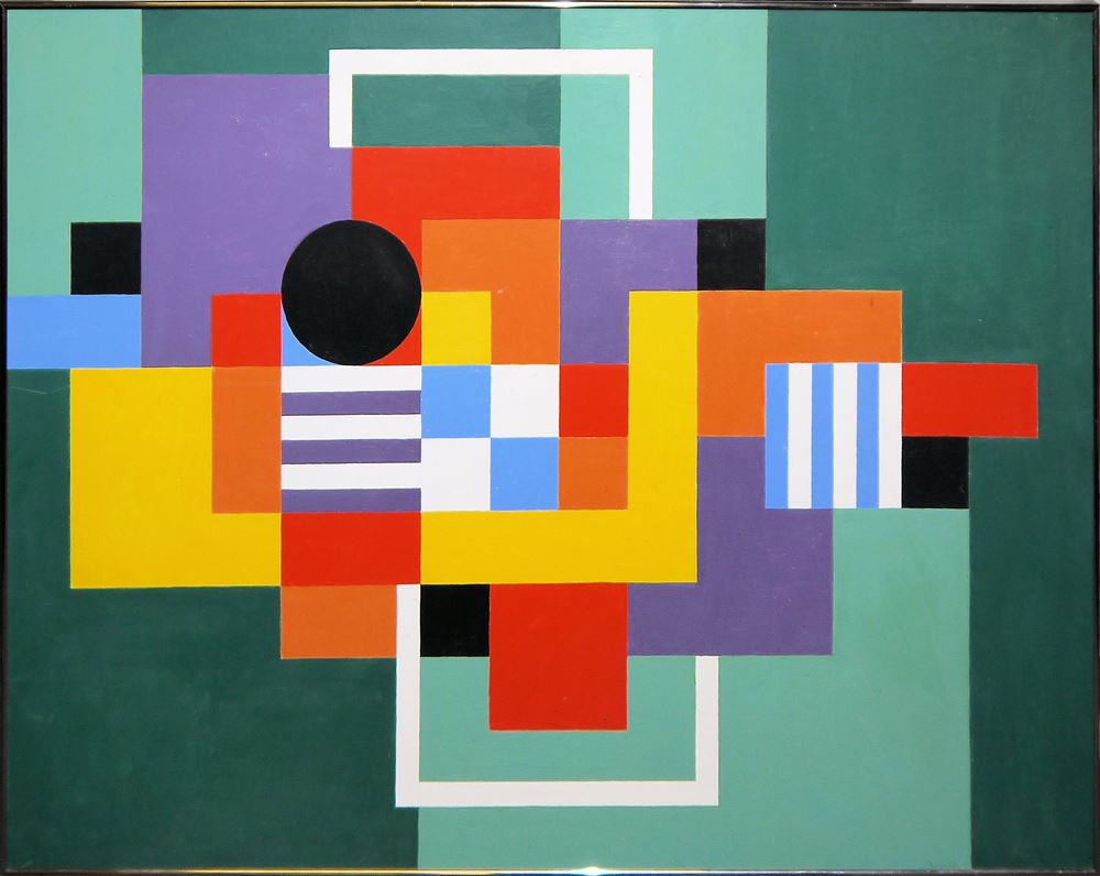 0331-Francis Sisley, “Playing field”, großes konkret-geometrisches Ölgemälde von 1976, gerahmt