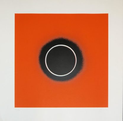0332-Otto Piene, Schwarzweißer Lichtkreis auf Orangerot, sign. Farbsiebdruck von 1970