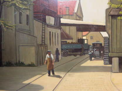 0335-Walter Rose, Fabrikansicht Fa. L. Glück an einem Sommertag, neusachliches Ölgemälde von (19)36, gerahmt