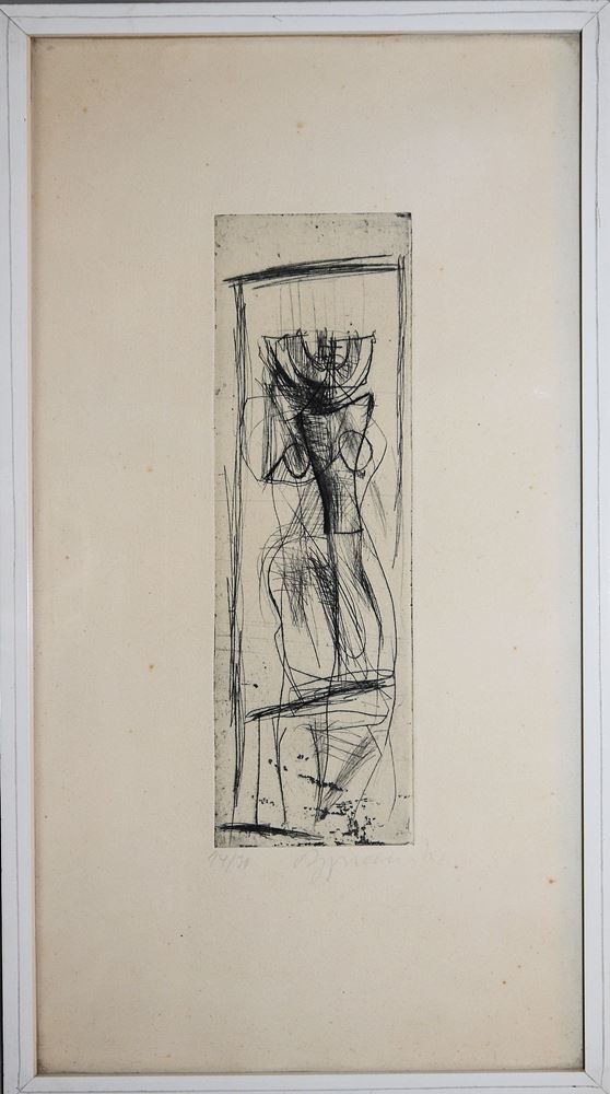 Rolf Szymanski, "Kleines Spielkartenbild III", Bronzeplastik von 1968-1969 und Figur, Radierung, gerahmt