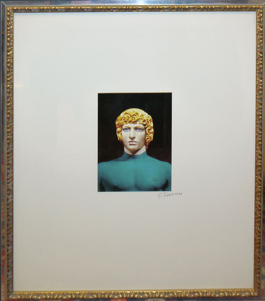 Olga Tobreluts, "Paul Smith" (Lacoste), „Antinous“ (Moschino) und "Aphrodite(Versace) 100% Frau", 3 signierte Farboffsets von 1999, gerahmt Olga Tobreluts, *1970 Murino, Leningrad Oblast, UDSSR, Malerin und Multi-Media Künstlerin, drei Köpfe griechischer Statuen "Paul Smith", "Antinous" und "Aphrodite", Farboffset, 21 x 15 cm, signiert und datiert (19)99, im Druck bezeichnet, alle unter Glas gerahmt Zur Künstlerin: Tobreluts studierte Architektur an der Staatlichen Universität für Architektur und Bauwesen Leningrad u. besuchte die Leningrader Kunstakademie als Gaststudentin. Von 1991 bis 1993 studierte Tobreluts am Institut „ART+COM“ in Berlin. Sie leistete Pionierarbeit beim Einsatz digitaler Medien in der russischen Kunstszene. 1994 wurde sie Professorin am Lehrstuhl für Neue Technologien dieser Vereinigung. 1998 eröffnete Tobreluts im Club „Mama“ das Zentrum für Fotografie. 2012 gründete sie die gemeinnützige Organisation „Neue Akademie Sankt Petersburg“. 2016 wurde Olga Tobreluts zum Ehrenmitglied der Russischen Akademie der Künste gewählt. Seit 2019 ist sie Mitglied der Pacsa Art Community.