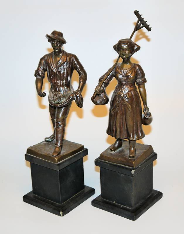 Nagel, Paar Bronzeplastiken Sämann und Bäuerin, signiert, um 1900