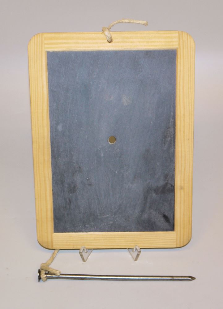 Günther Uecker, Loch, Nagelobjekt von 2000, signiert Günther Uecker, 1930 Wendorf - 2025 Düsseldorf, Loch, holzgerahmte Schiefertafel mit einem Loch in der Mitte, durch das ein großer Stahlnagel an einer Kordel geführt wird, 25 x 18 x 2 cm, mit weißem Kreidestift signiert, datiert (20)00, bezeichnet e/a,